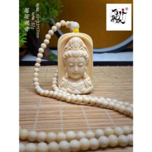 天然マンモス牙美しい彫刻蓮花観音 ネックレス