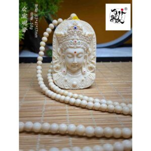 天然マンモス牙美しい手作り彫刻衆宝観音 ネックレス