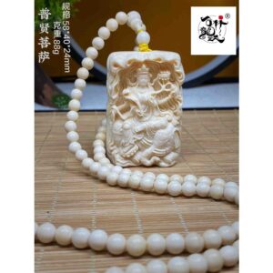 天然マンモス牙美しい手作り彫刻普賢菩薩 ネックレス