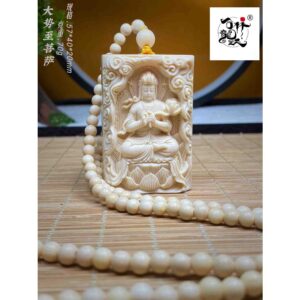 天然マンモス牙美しい手作り彫刻大勢至菩薩 ネックレス
