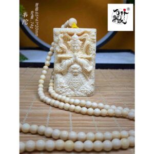 天然マンモス牙美しい手作り彫刻韋駄天菩薩 ネックレス