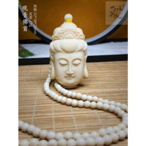 天然マンモス牙美しい手作り彫刻観音仏首 ネックレス