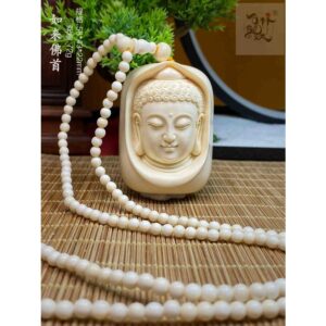 天然マンモス牙美しい手作り彫刻如来首 ネックレス
