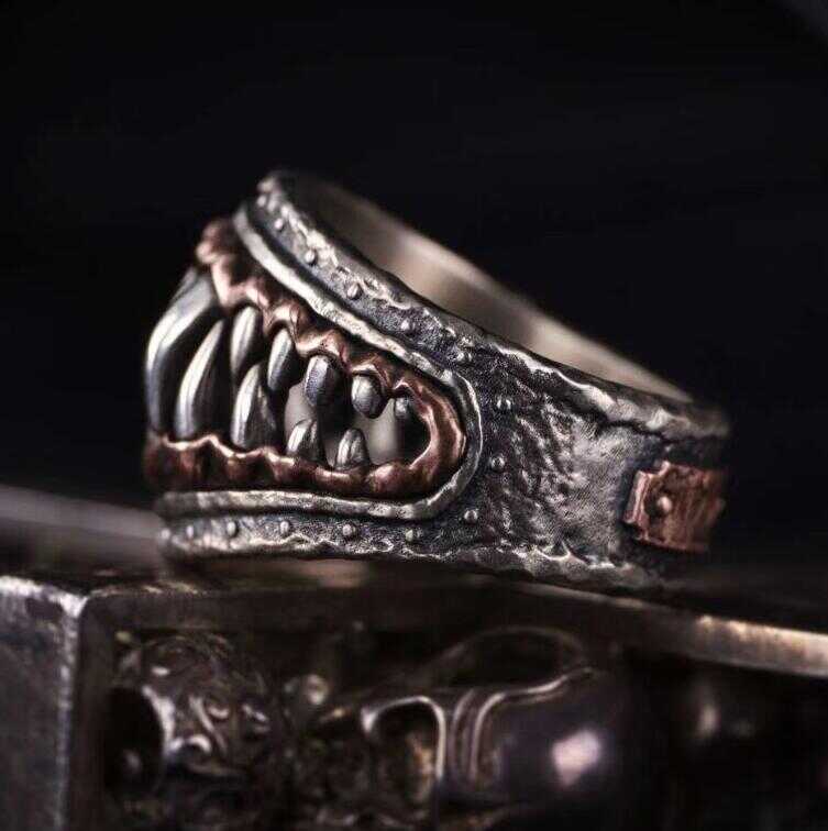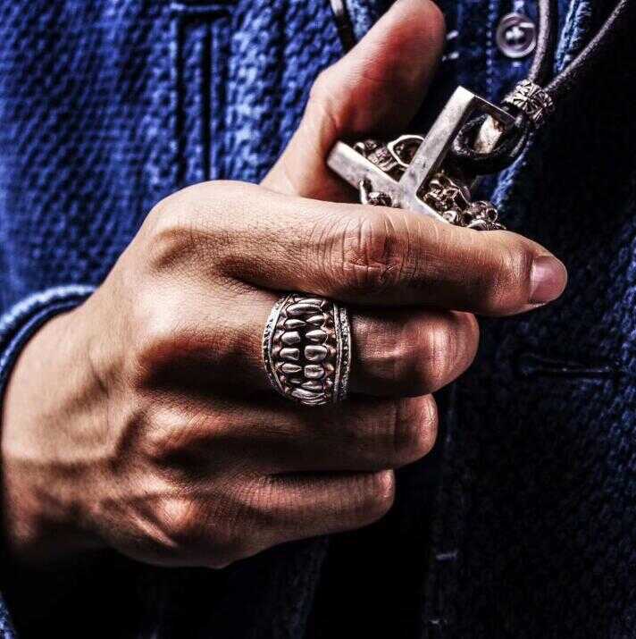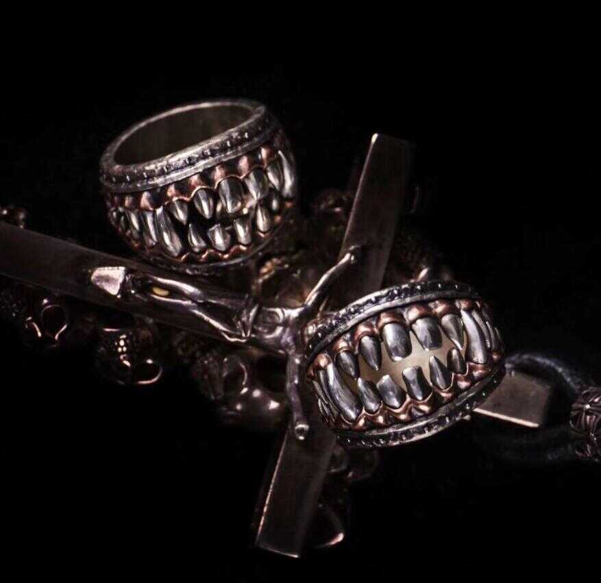【Devil's Teeth】ワイドサークルデビルリング 凶暴なシルバー925 欧米風誇張横暴レトロリング 男性用