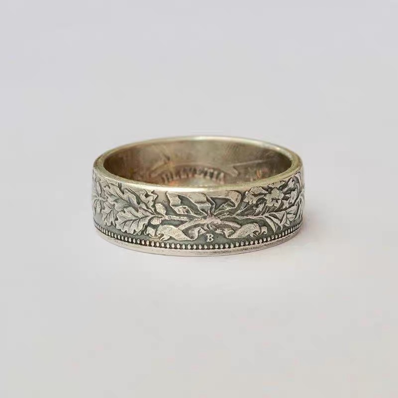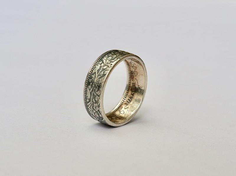 商品名:スイス2フランタイ銀貨リング、エーデルワイススターコインモディファイドリング、カップルリング