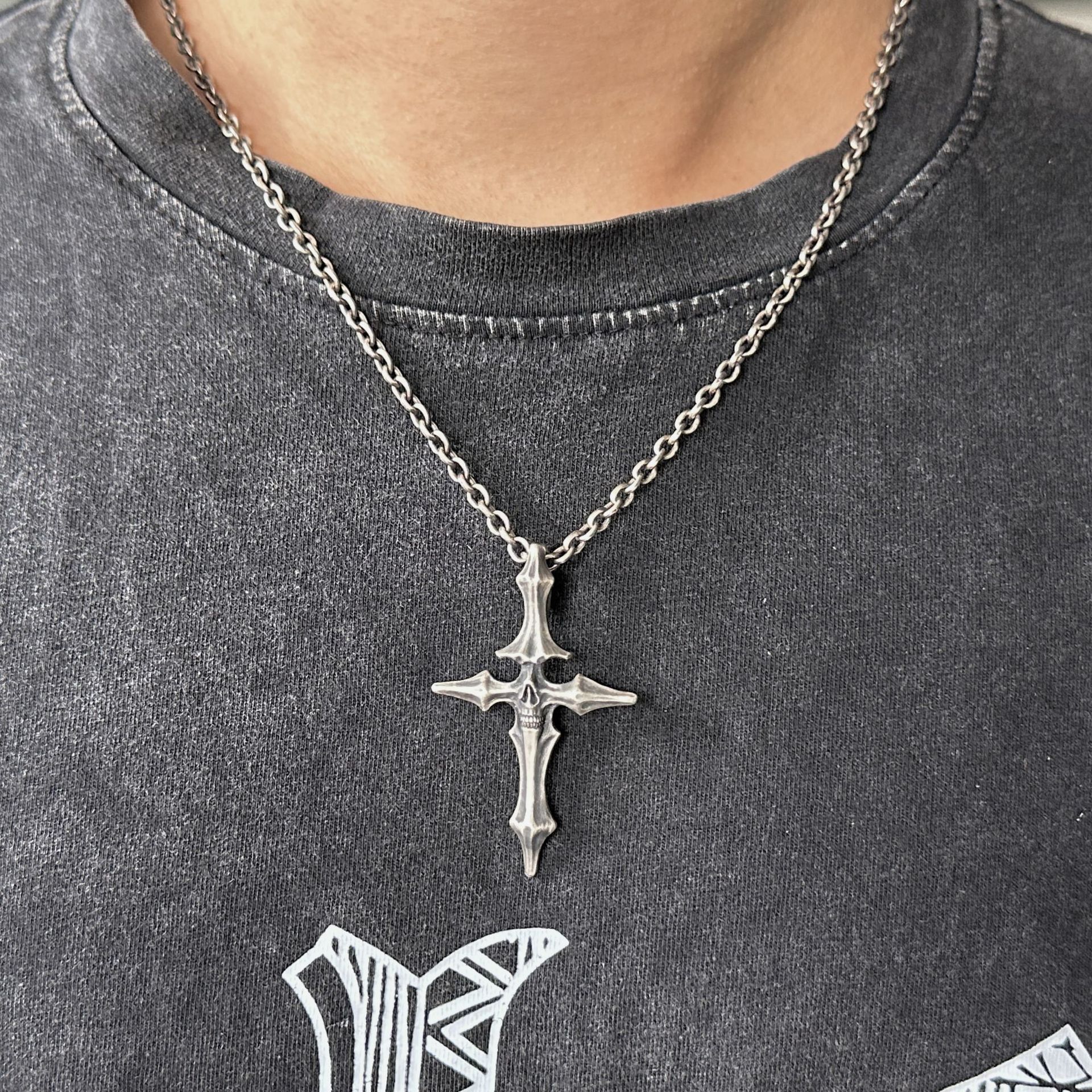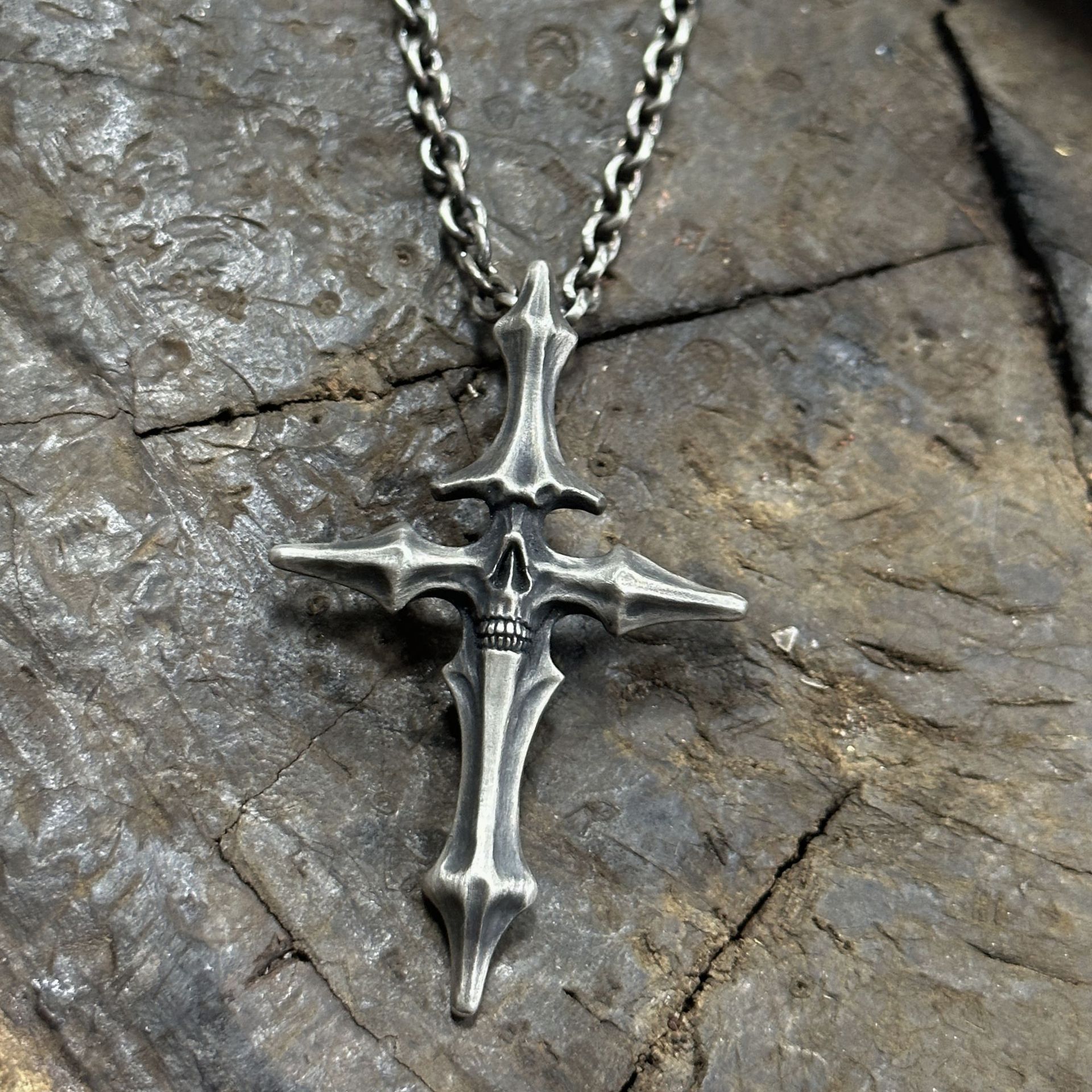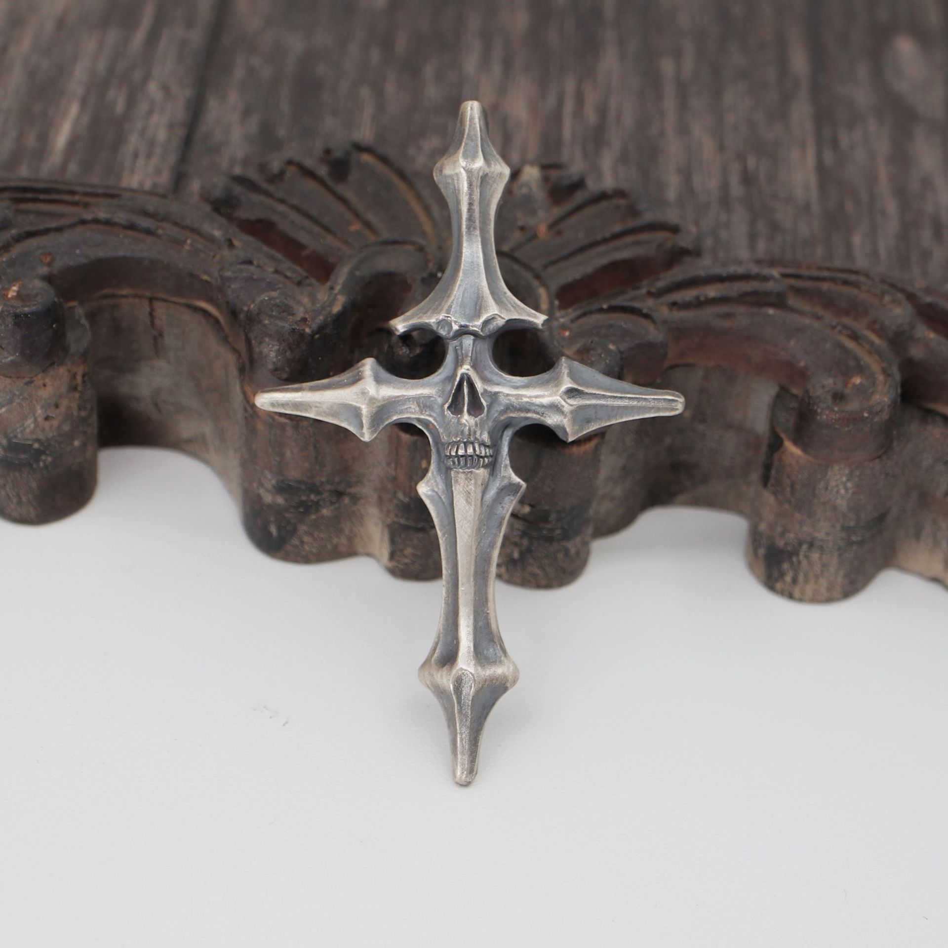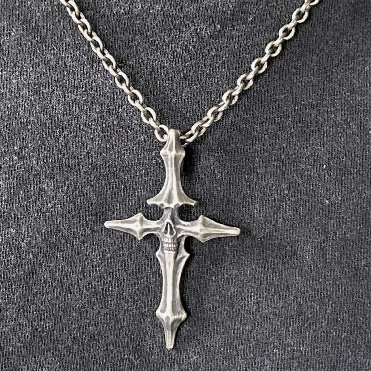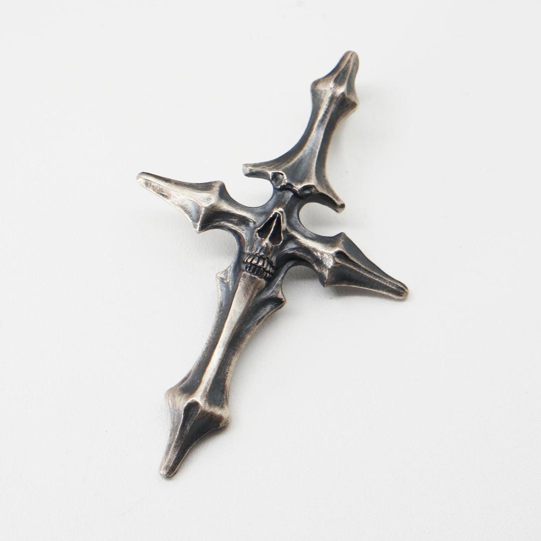 ヴィンテージDUAL FLOWSスタイル、生と死の十字架ペンダント、古い頭蓋骨のタイシルバージュエリー