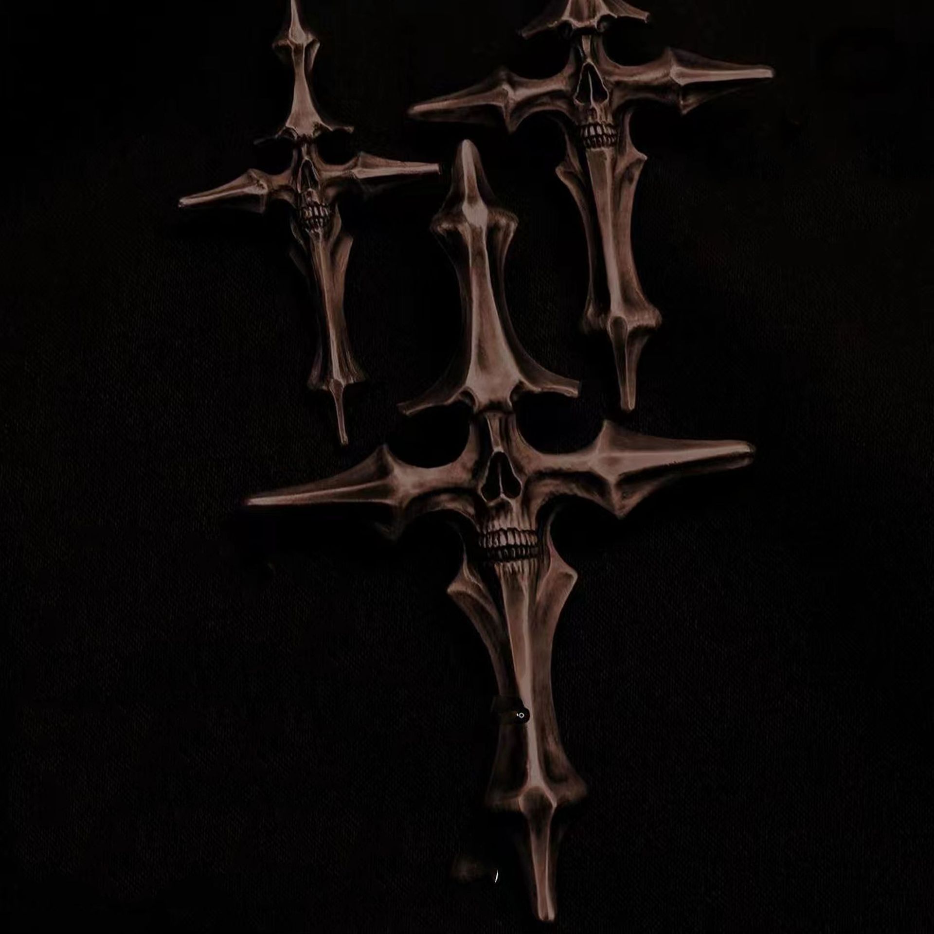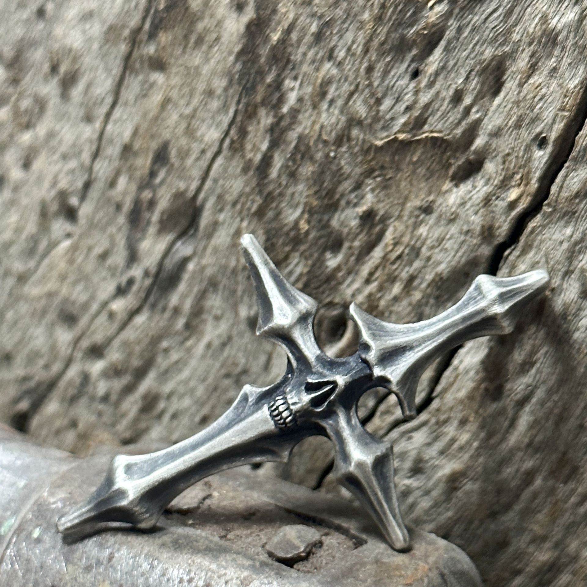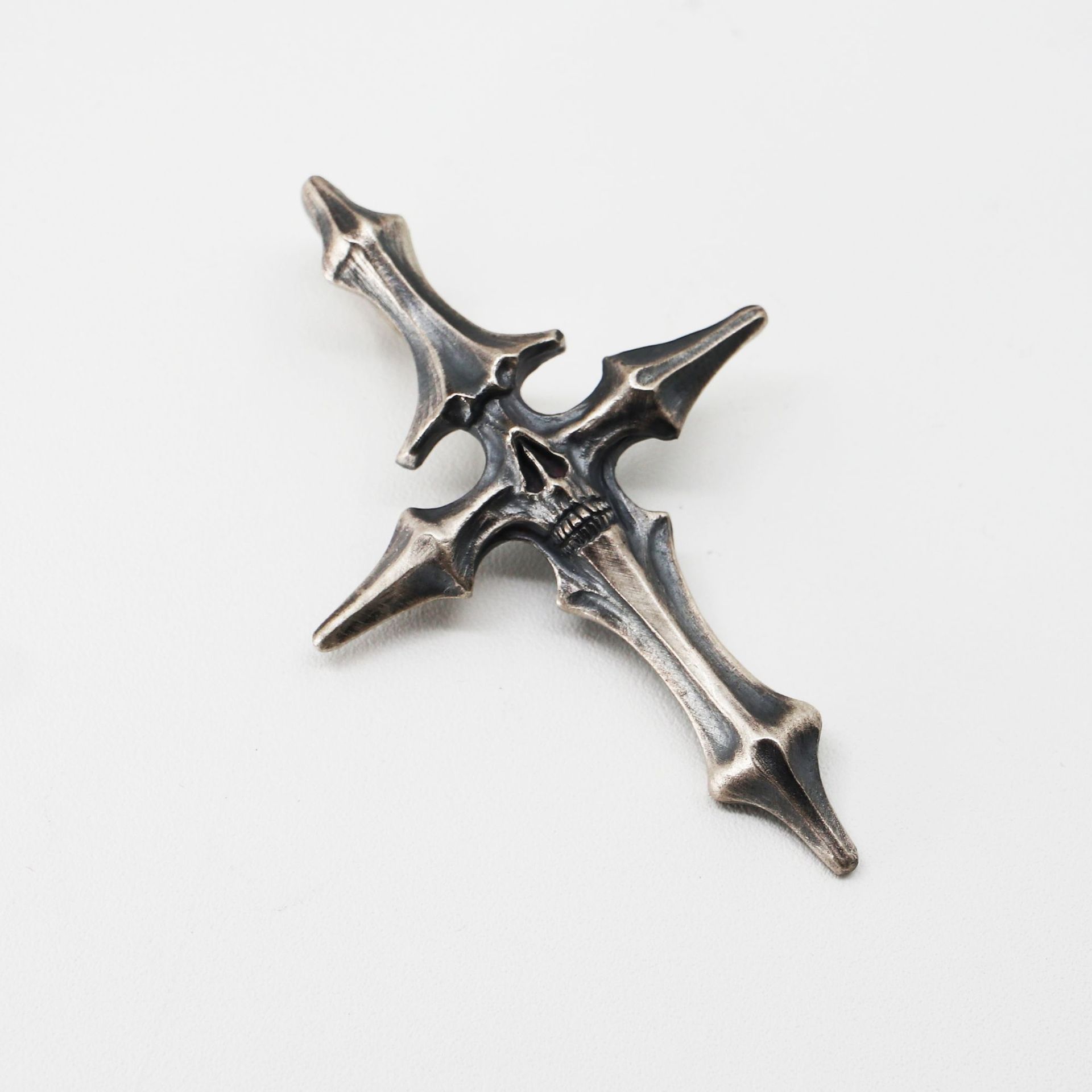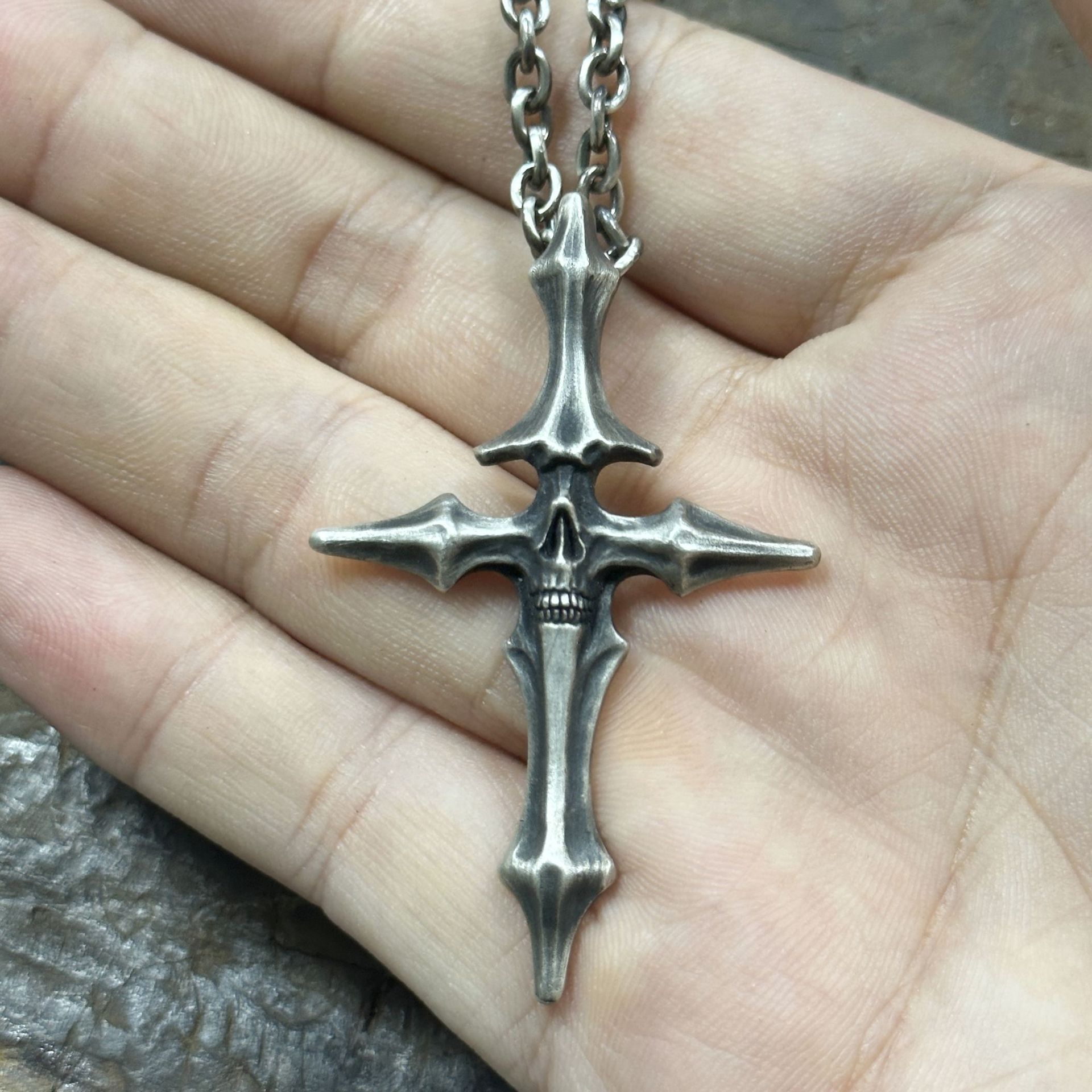 ヴィンテージDUAL FLOWSスタイル、生と死の十字架ペンダント、古い頭蓋骨のタイシルバージュエリー