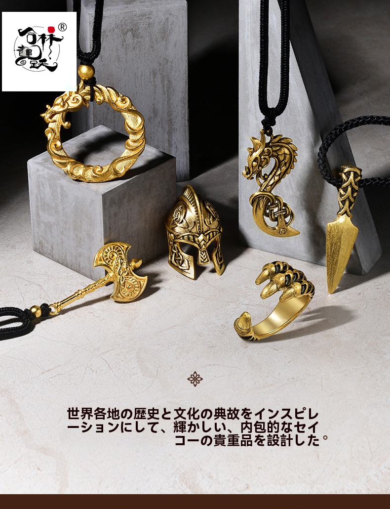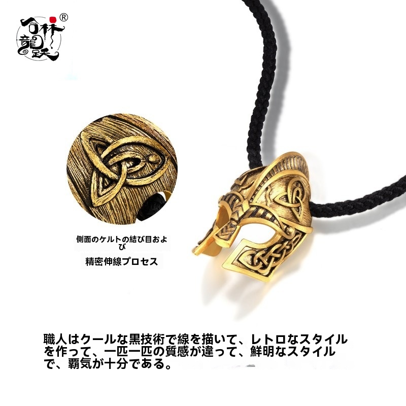 古代ゴールドバイキング伝説戦士ヘルメットペンダント