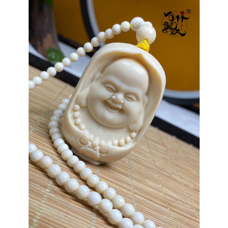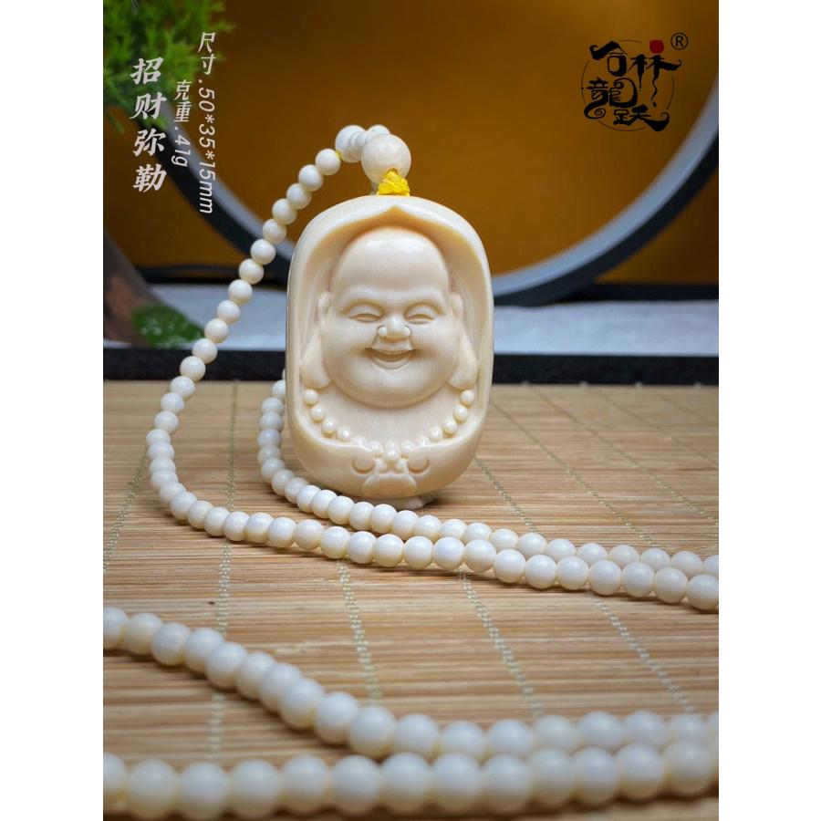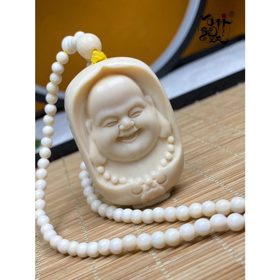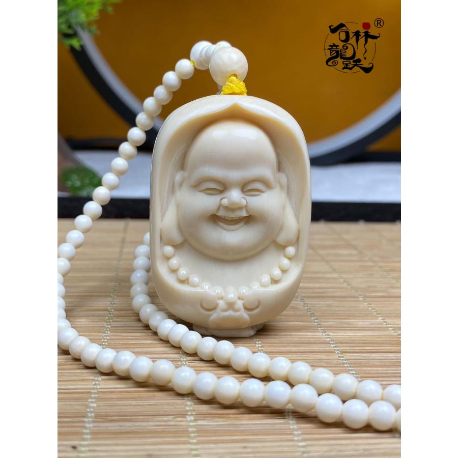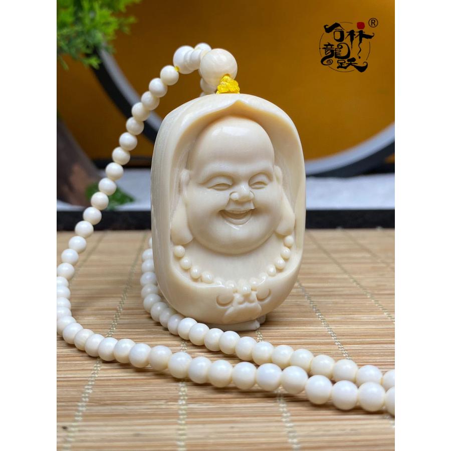 商品名:天然 モンマスの牙 精巧彫刻 金運の招き弥勒 ペンダント