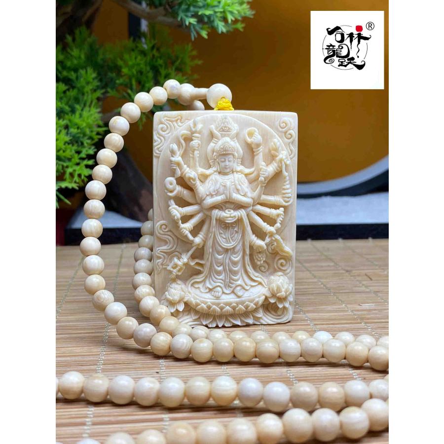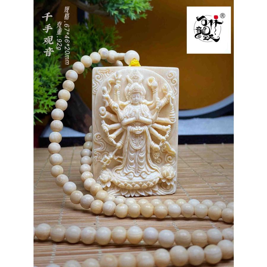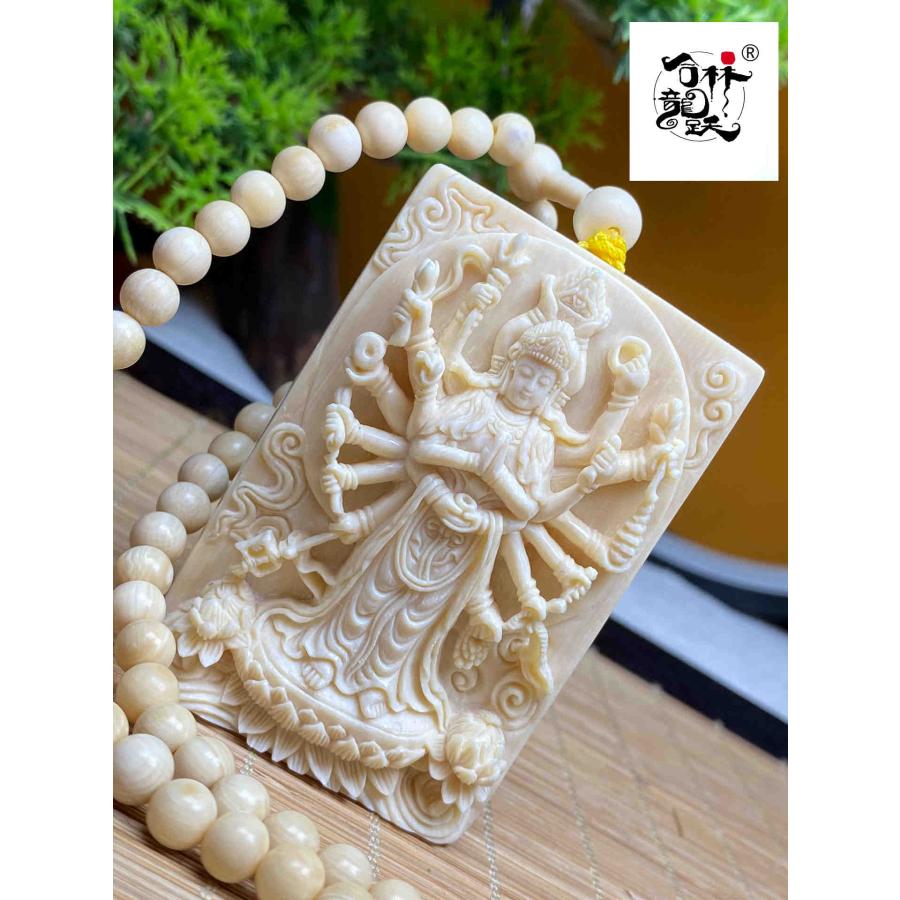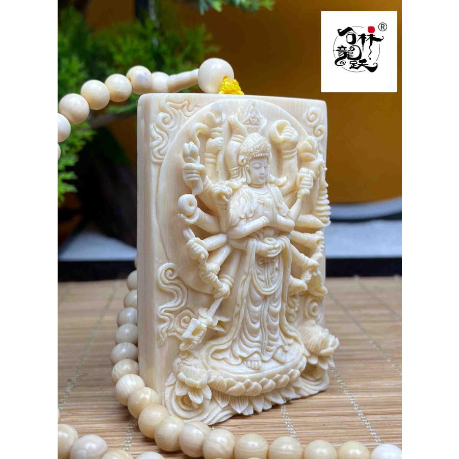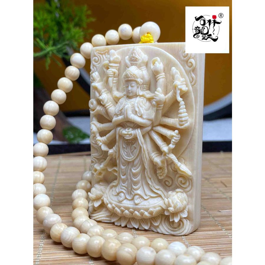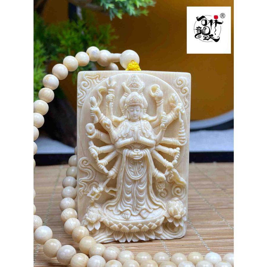 商品名:天然マンモス牙精巧な手作り彫刻千手観音ネックレスお