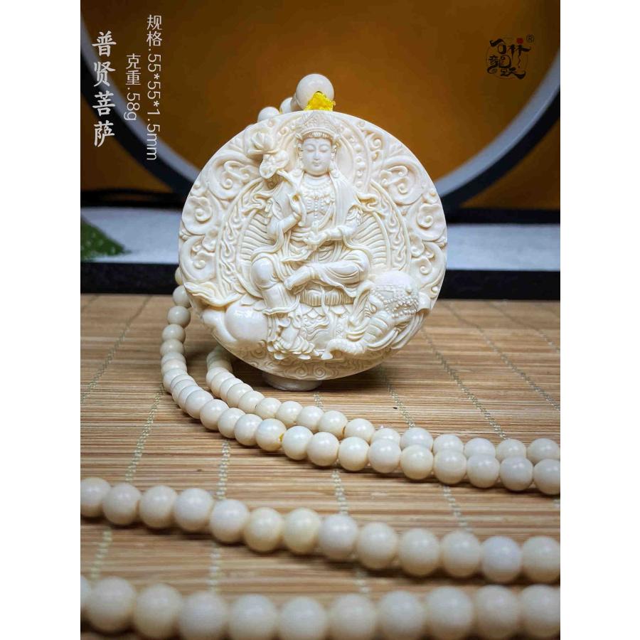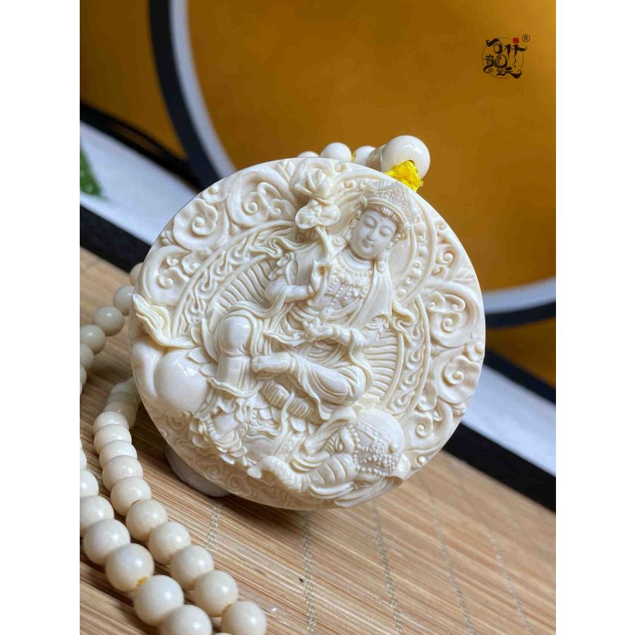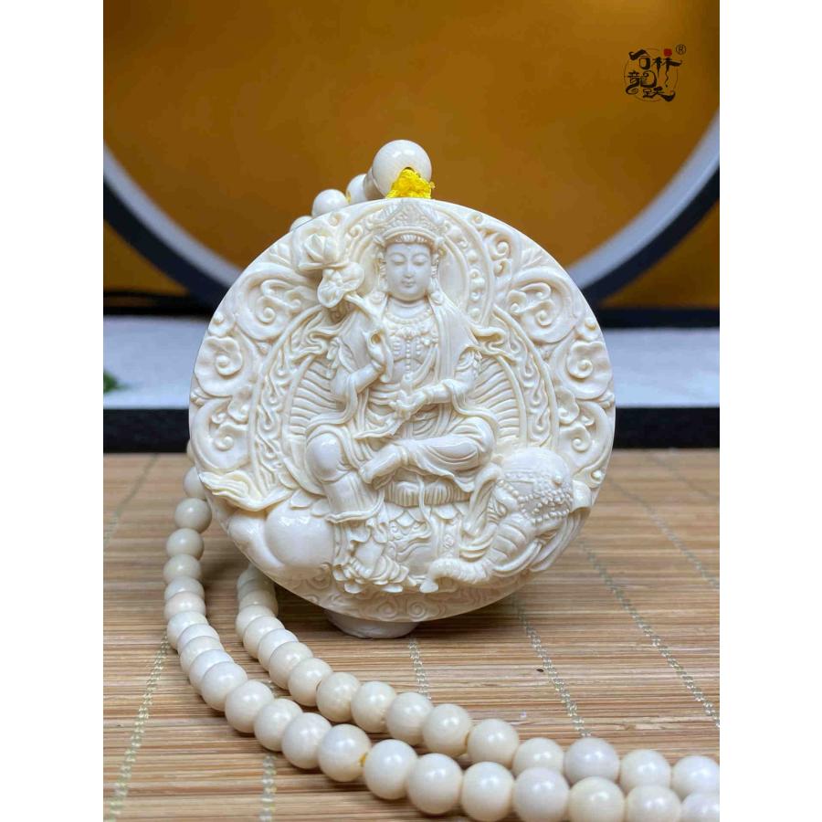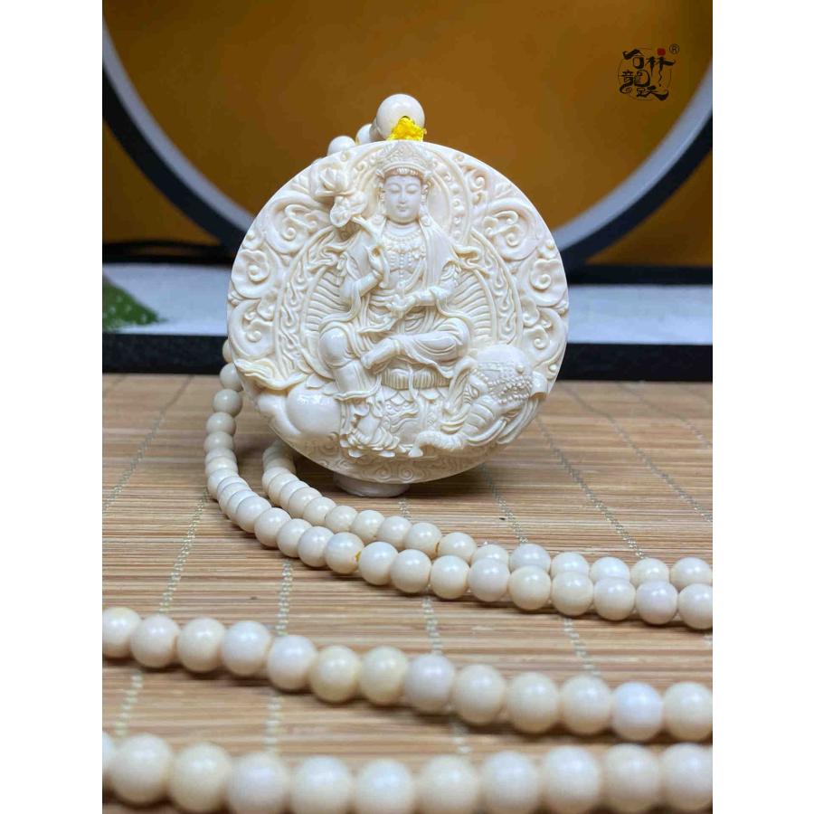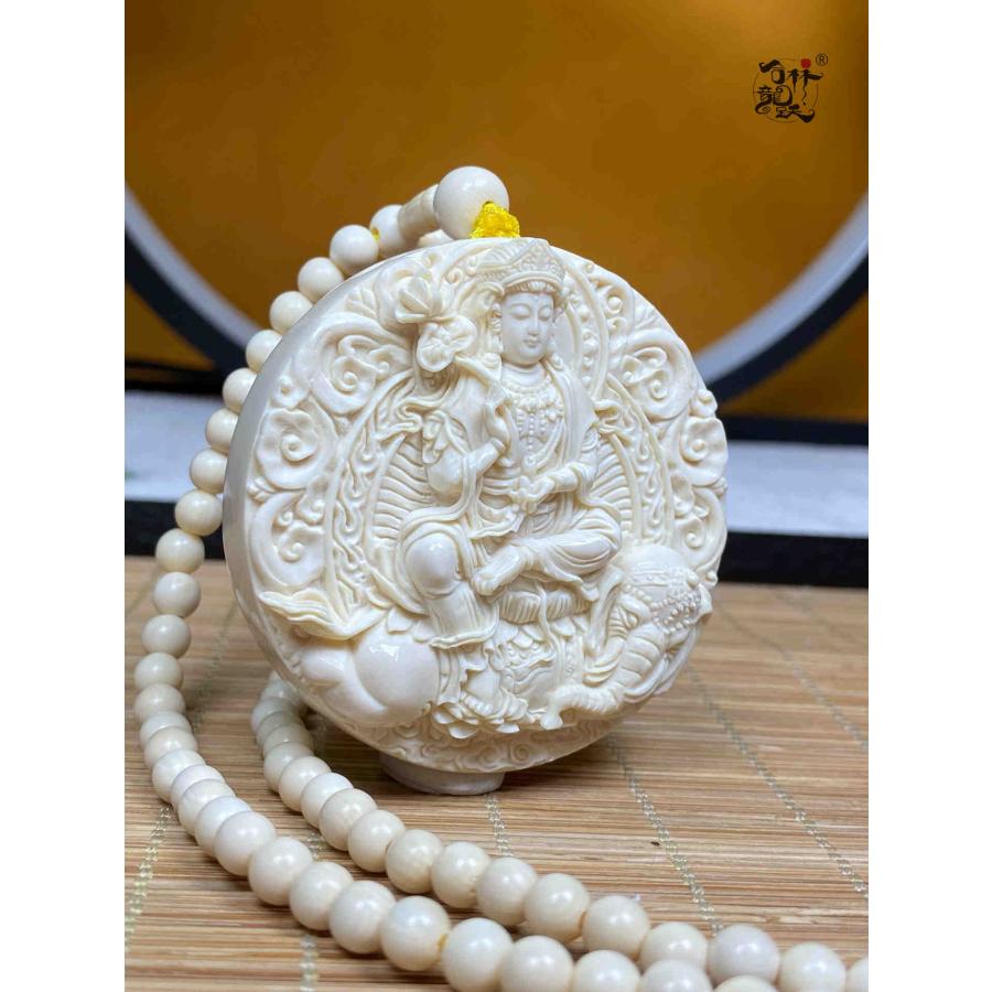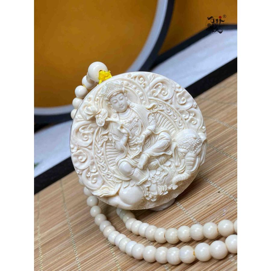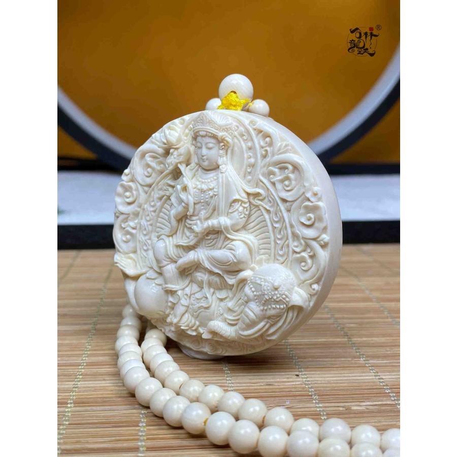 商品名:天然マンモス牙美しい手作り彫刻 普賢菩薩 ネックレス