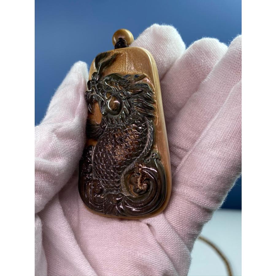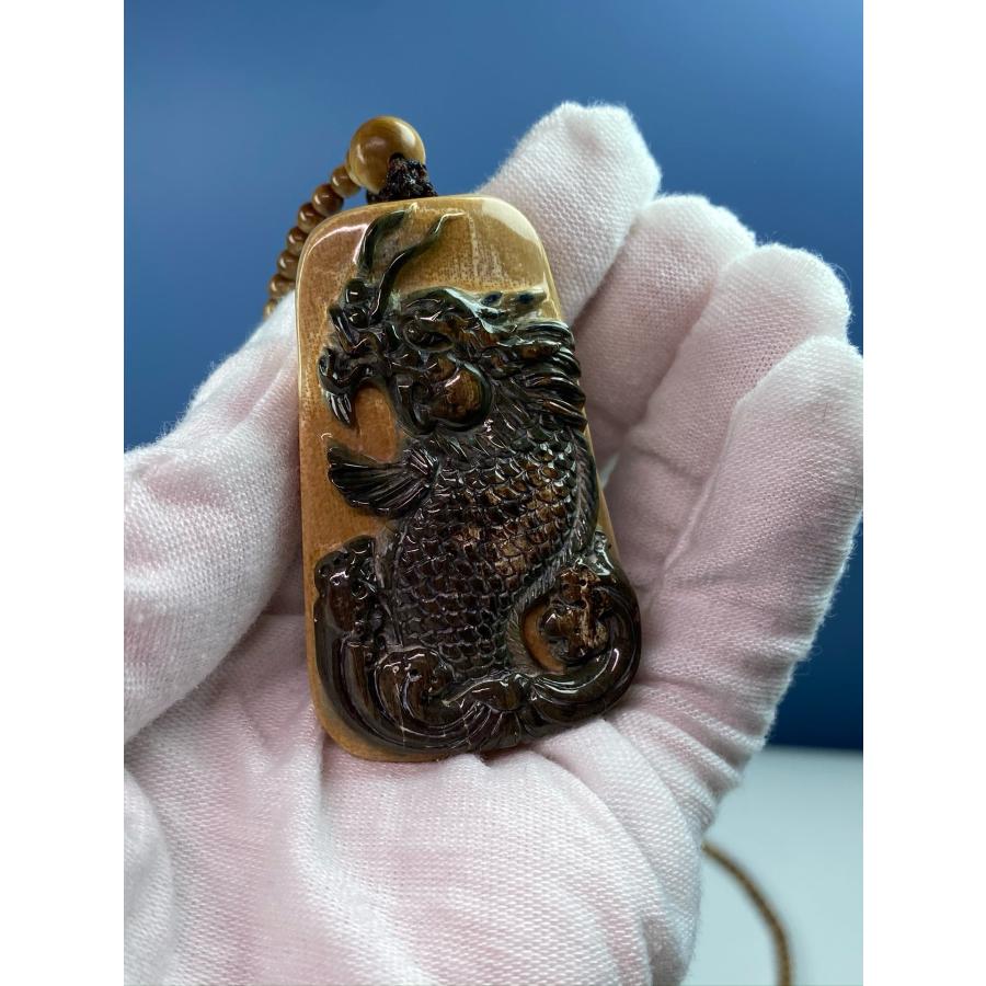 商品名:天然マンモス牙美しい手作り彫刻 魚化龍 ペンダント