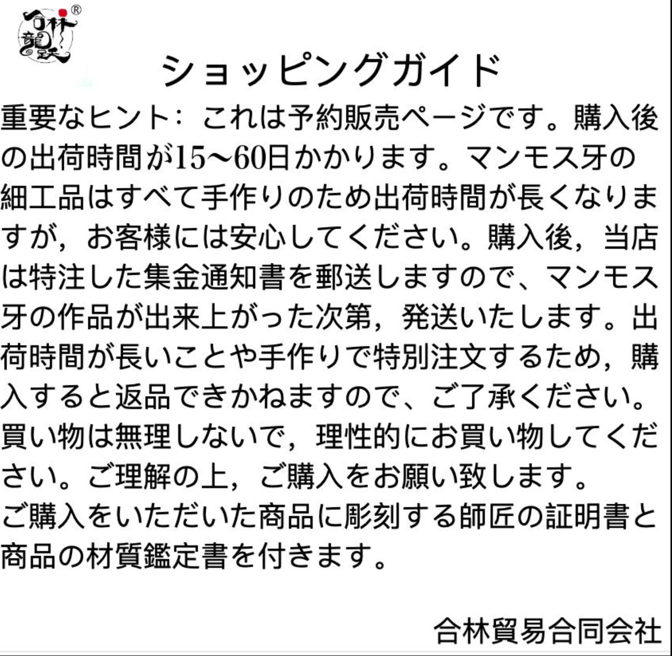 彫刻コード:MM240217068-455商品名:天然マンモス牙美しい手彫り 九龍が棺を引く ネックレス最後の写真をご覧くださいヒント:手作り彫刻なので彫刻の複雑さにより価格が異なりますので、ご了承ください、よろしくお願いします!【九龍が棺を引く】ストラップ、手作り札。九は中国文化の最大の数字で、龍は王者の象徴,九龍通聖を意味する。地位と富を象徴し、財運の繁栄と出世することを助けてくれます。九龍引棺はまた人気小説にも非常に有名な寓意があります。「敵は私の肉体を倒しても、私の執念を消すことはできません。」6mm×108玉の数珠を合わせるサイズ:67×43×22mm重量:約95g(手彫りは微小な誤差があります)マンモス(Mammuthus Primigenius)、毛象(長毛象)とも呼ばれ、脊索動物門、脊椎動物亜門、哺乳綱、真獣亜綱、長鼻目、真長鼻亜目、象科、マンモス属の寒冷気候に適応する動物である。かつては世界最大のゾウの一つであり,陸上で生存した最大の哺乳動物の一つであり,その中で草原マンモスの体重は12トンに達した。これは氷河世紀の巨大なものです当店のすべての商品写真は自然光で実物をスマホで撮影されており、修飾や色調整も行われておらず、できる限り実際の商品と一致していますが、撮影時の光、角度、ディスプレイの色のずれ、個人の色の認知などの違いにより、実物は写真と少し細かい色差が出る可能性があり、最終色は実際の商品を基準としています。実物写真は許可されていないと転載しないてください!当店では出荷前に発送品の検査テストを行っており、テスト検査に問題がない場合は発送しております。だから安心して購入してください。
