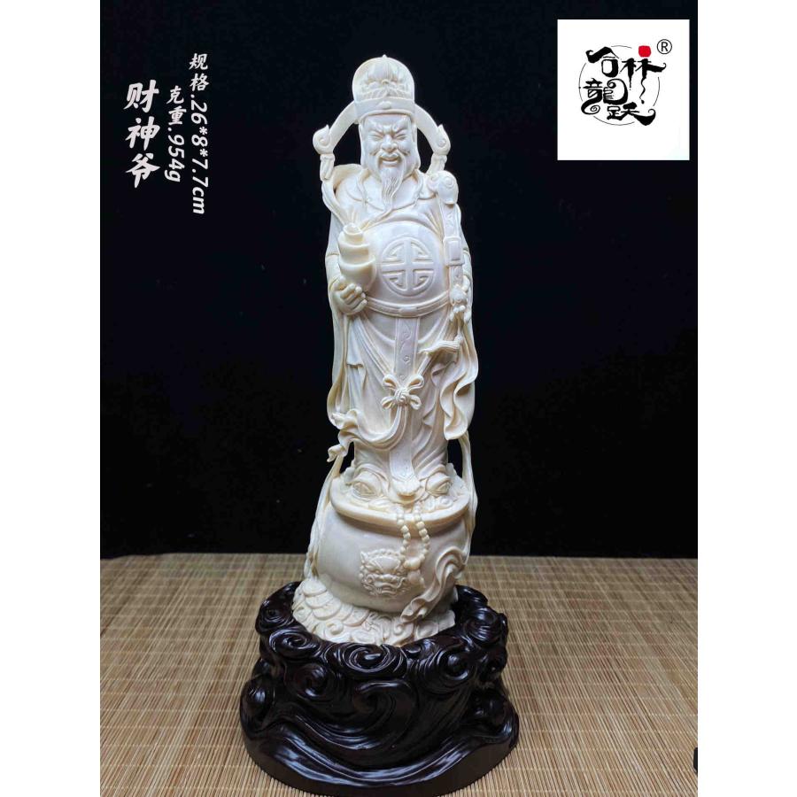 商品名:天然マンモス牙美しい手作り彫刻財神爺 招財進宝置物