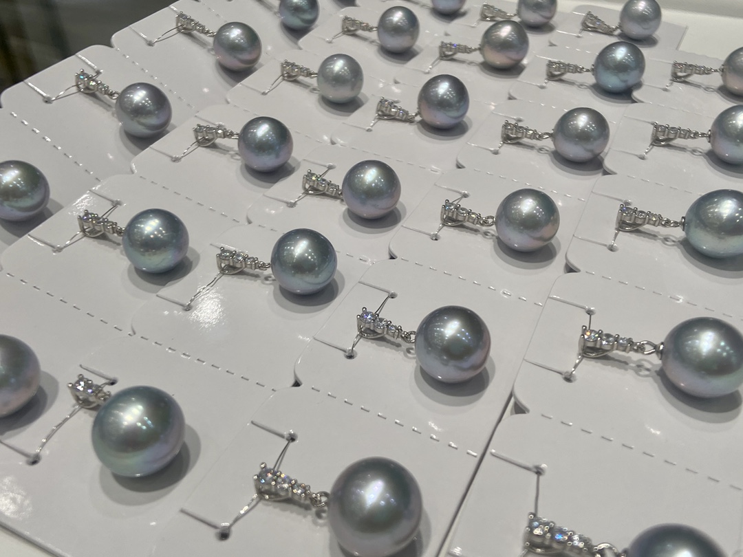 天然真珠ペンダント、S925シルバーセッティング、真珠の直径13〜14mm、丸くて明るい、わずかな傷
